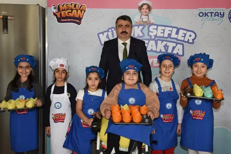 Yıldırım Belediye Başkanı Oktay Yılmaz, Molla Yegan Çocuk Üniversitesi mutfak atölyesindeki çocuklarla birlikte mutfağa girerek tatlı yaptı.