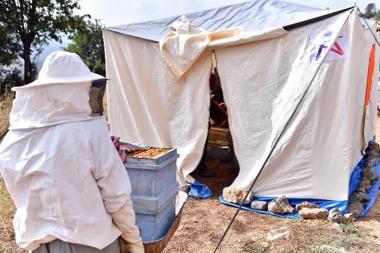 Proje sayesinde arıcılığın daha sağlıklı ve hijyenik koşullarda yapılmasını sağlayan Büyükşehir, lezzetli ve kaliteli balların üretilmesine de ön ayak oldu. Büyükşehir’in çadır desteğinden faydalanan arı yetiştiricilerinden biri de, Toroslar ilçesine bağlı Değnek Köyü’ndeki Pınar Çelen oldu.