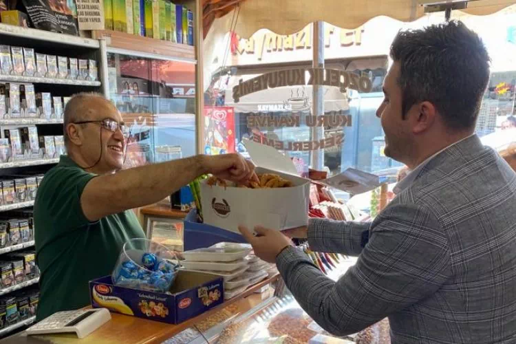 Erdoğan DEMİR / EDİRNE (İGFA) - Ziyarette CHP Keşan İlçe Başkanı Anıl Çakır, İl Yönetim Kurulu Üyeleri, İl Disiplin Kurulu üyeleri, İlçe Yönetim Kurulu üyeleri esnafa kandil simidi dağıttı.